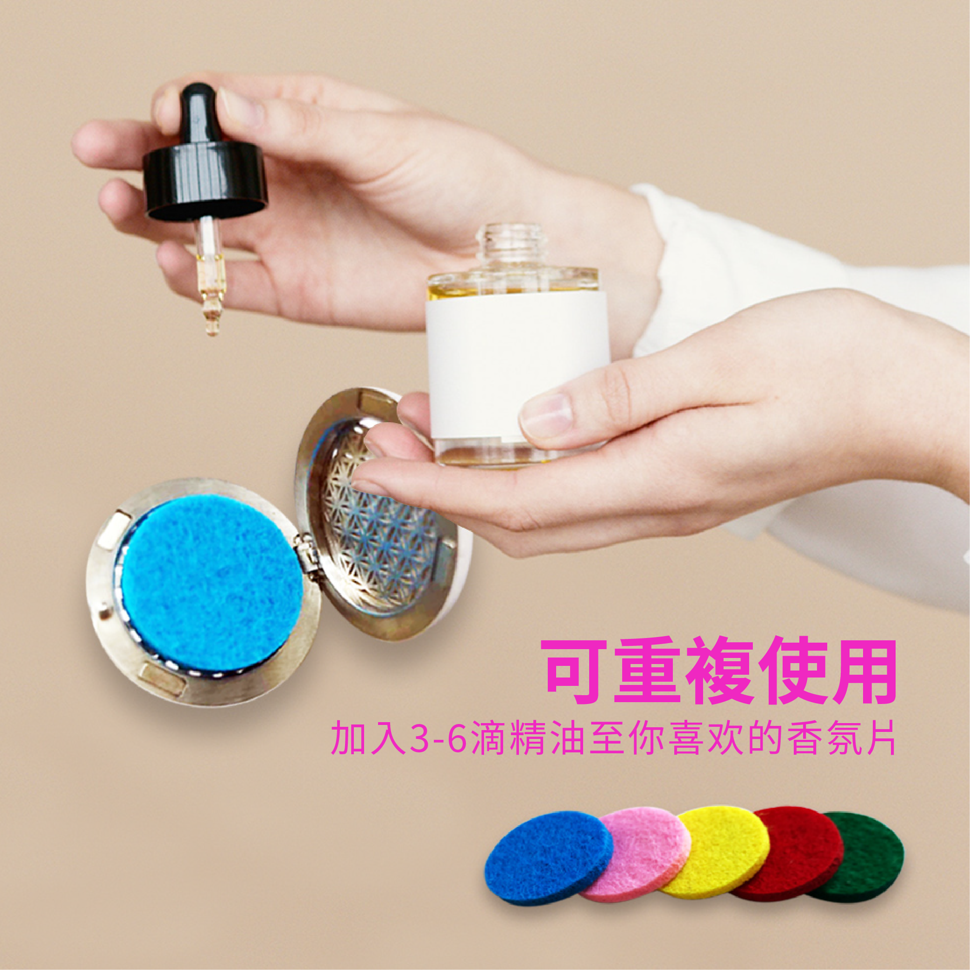 耐腐食性と耐久性に優れ、エッセンシャルオイルコットンパッドと組み合わせることで、香りが長時間持続します。